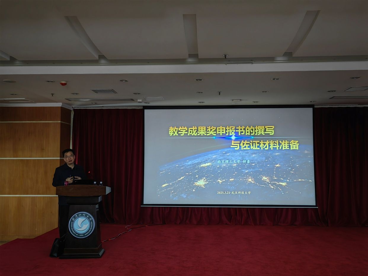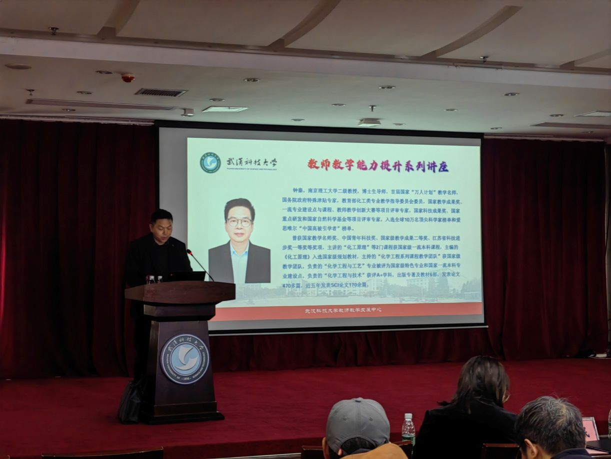 为促进402am永利手机版教师提升教育教学水平、增强教学创新能力以及教学成果转化能力, 3月21日,本科生院联合化学与化工学院以及武汉科技大学党外知识分子联谊会,特邀请首届国家“万人计划”教学名师、国务院政府特殊津贴专家、教育部化工类专业教学指导委员会委员,南京理工大学钟秦教授来校以“通往教学名师之路”、“教学成果奖申报书的撰写与佐证材料准备”为主题,做经验交流及专题讲座。本科生院副院长、教师教学发展中心主任张志清主持,化学与化工学院党委书记刘抗强、院长郑安民、副院长吴晓琴、徐继坤以及副书记余婷参会,九十余位教师参加。