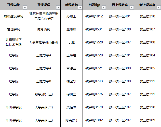 因为中秋节放假调停课,9月14日补原9月16日(第3周星期一)的课程,所以封楼期间下表中原安排在教一楼上课的课堂需临时调整上课教室。