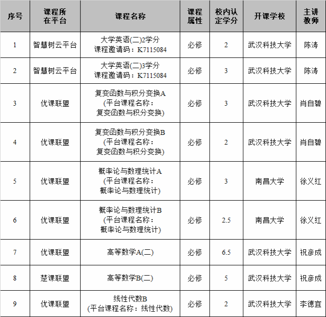 根据报名情况,增加开设了一些线上课程(仅限重修选择),具体课程清单详见下表。