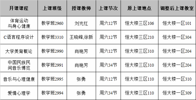 第十五届全国大学生数学竞赛将于11月11日上午在黄家湖校区恒大楼三区进行。恒大楼三区11月11日7:00 - 12:00封楼。封楼期间原安排在恒大楼三区上课的课堂调整见下表: