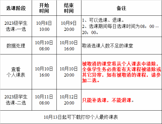 根据教学工作安排,现组织2023级在校本科生进行2023-2024-1学期大学英语类课程和公共课程平台通识教育选修课的选课,具体事项如下: