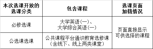 (2)已经签字选择修读日语、新疆班英语的学生不需要选大学英语类课程,个人课表里会直接安排对应课程。